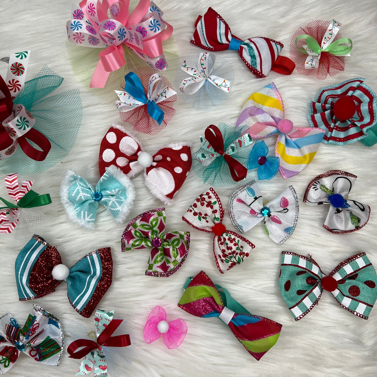Pixie Dog Grooming Bows come in Small loop bows or Puff styles.
