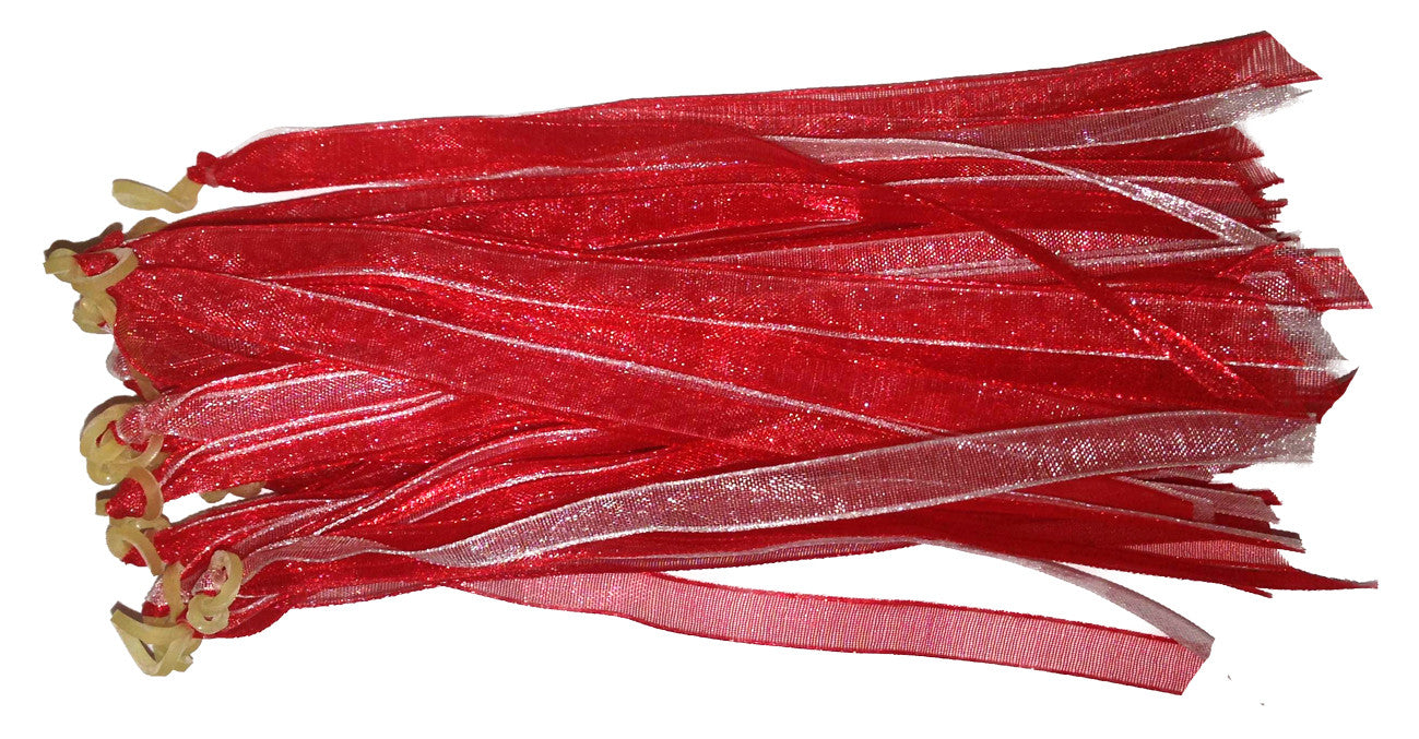 These great streamers will enhance any of our bows. Just slip them over the bow after it is attached. The streamers are 6" long and can be cut to any length as needed. 24 Per Pack