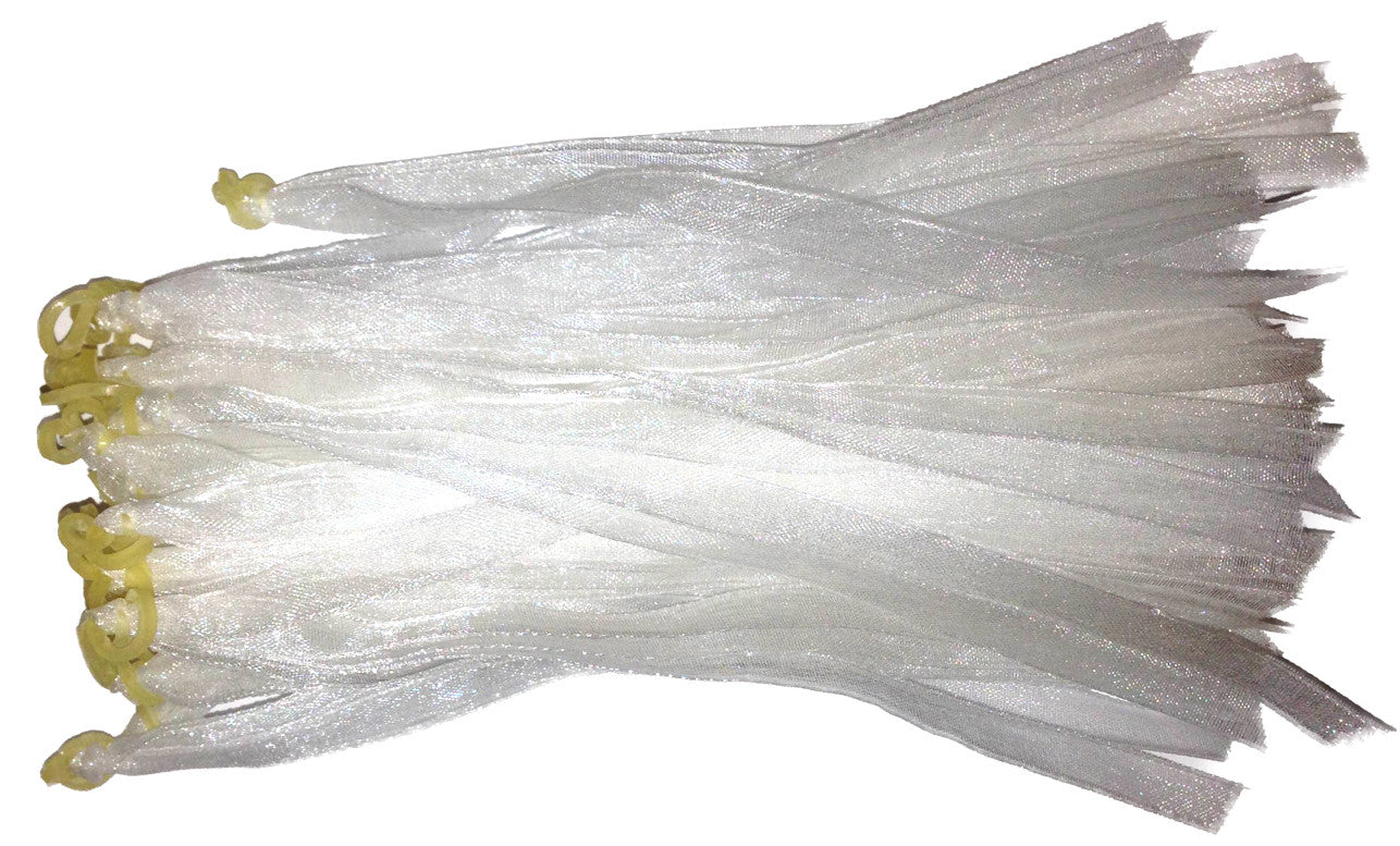 These great streamers will enhance any of our bows. Just slip them over the bow after it is attached. The streamers are 6" long and can be cut to any length as needed. 24 Per Pack