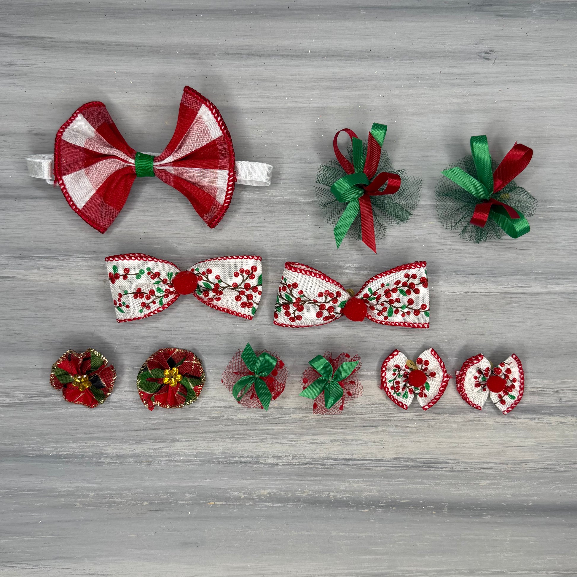 This beautiful Holiday collection includes Jumbo Bow tie, Topsy Turvy, Classic, Tiny Tedi, Medium and Petite Tulle Bows!