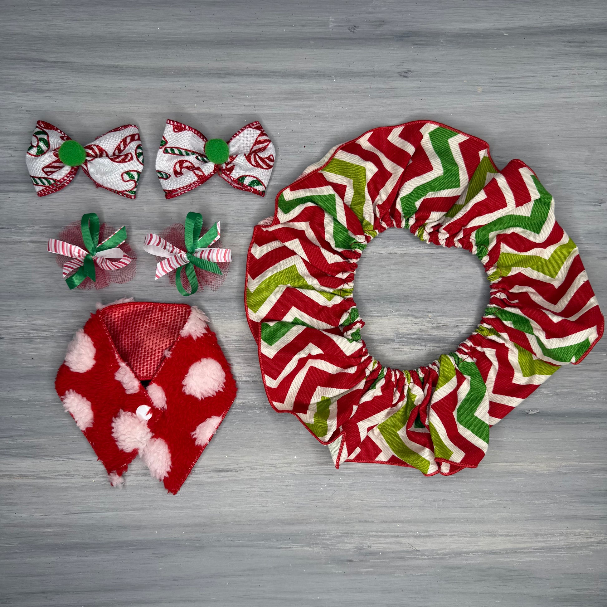 This beautiful Holiday collection includes Large Fancy Frill, Over the Top, Fur Neckwear, and Medium Tulle Bows!