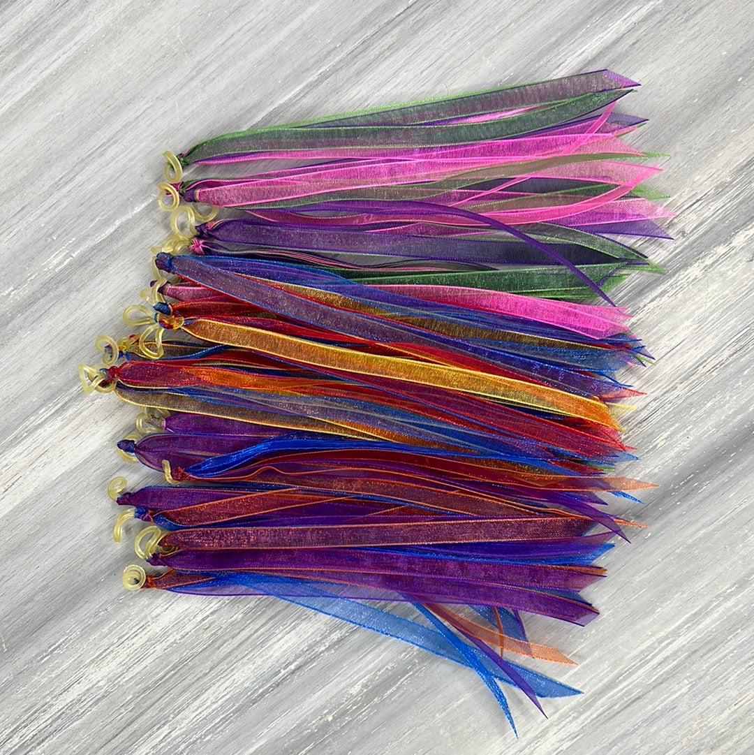 These great streamers will enhance any of our bows. Just slip them over the bow after it is attached. The streamers are 6" long and can be cut to any length as needed. 24 Per Pack