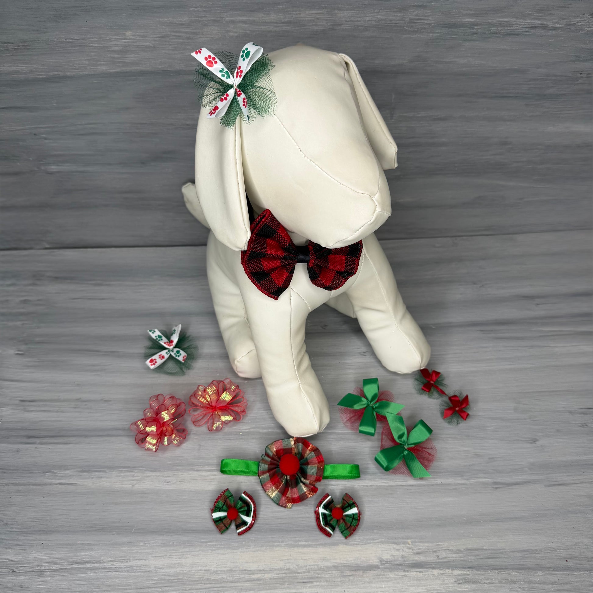 This beautiful Holiday collection includes Jumbo Bow tie, Ruffled Pom, Tiny Topsy Turvy, Large Pixie, Medium and Petite Tulle Bows!