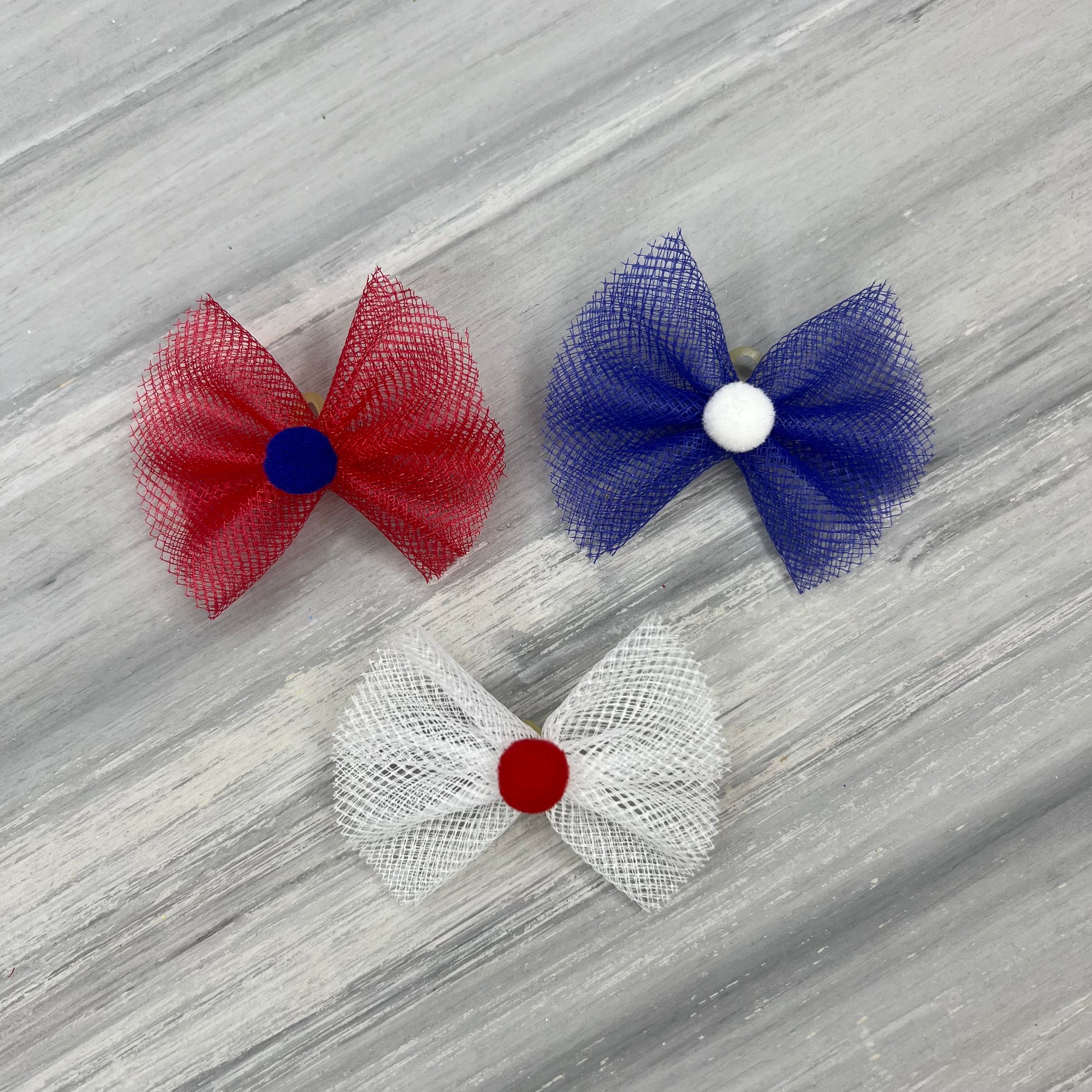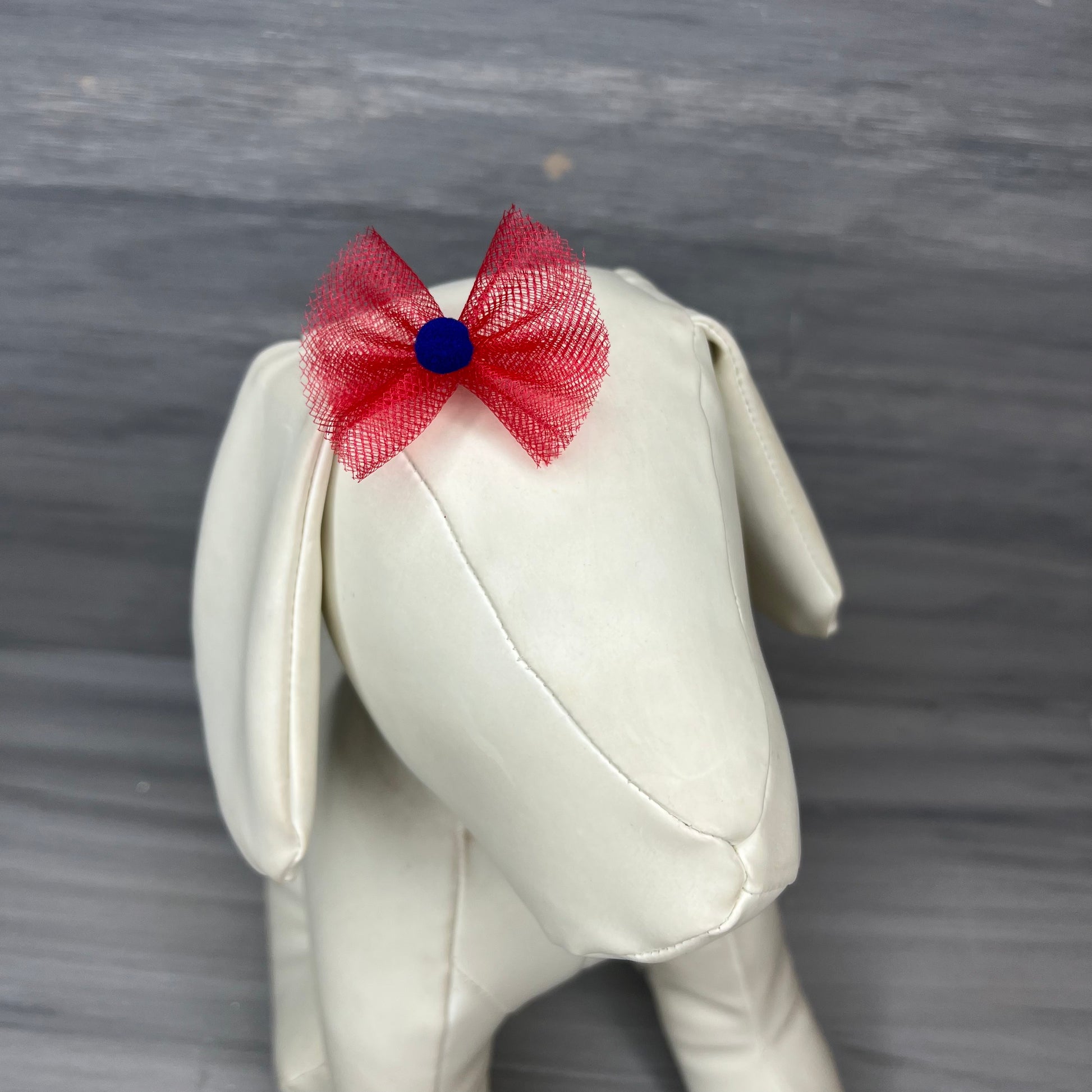 Our brand new Top Knots are so beautiful! They measure 2 1/4 in x 1 3/4 in. These are perfect for any size dog on the head or collar!