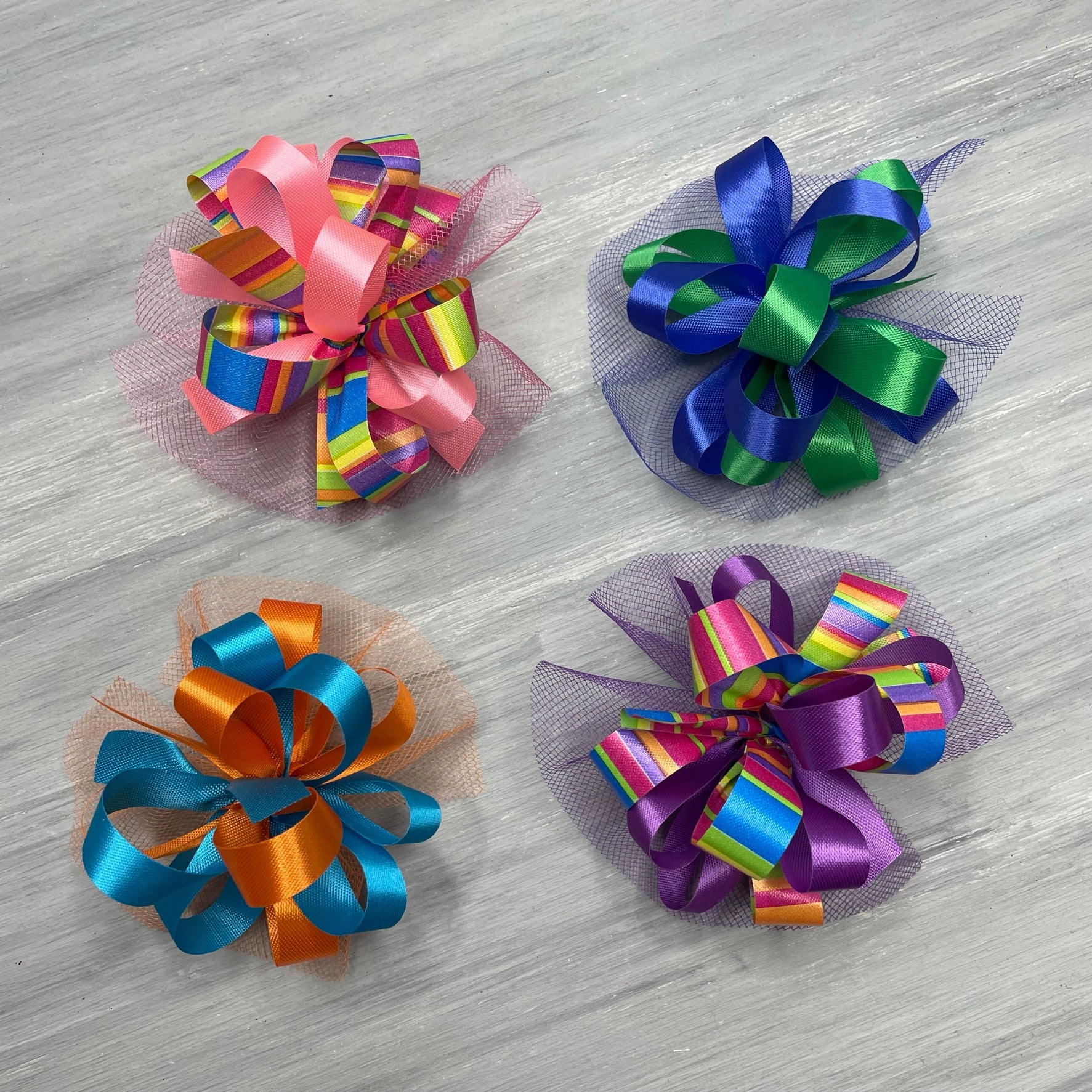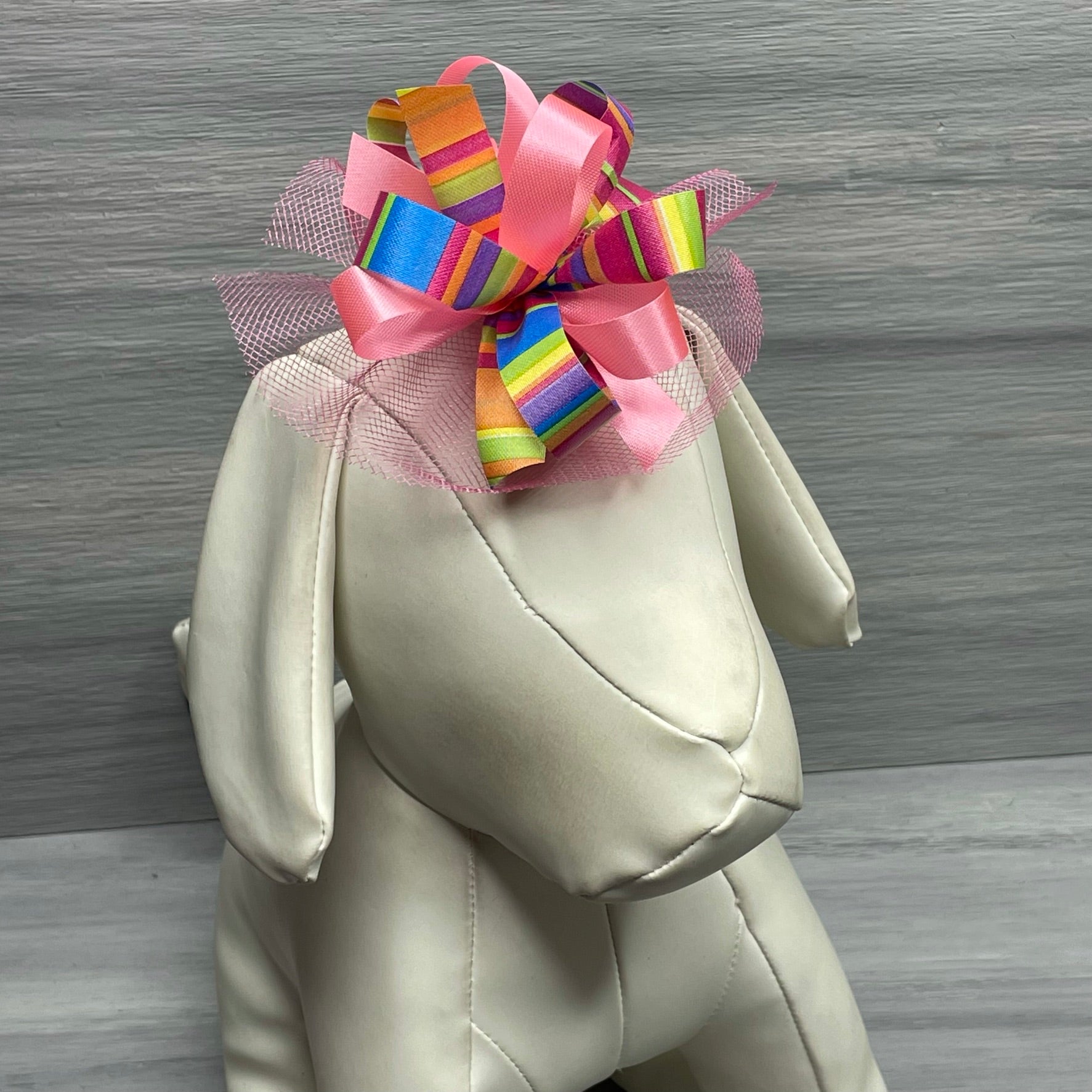 Great colors to brighten up any occasion. 8 - Large Bows - About 4 Inches Across. Can be used on the collar or in the hair of really large dogs.