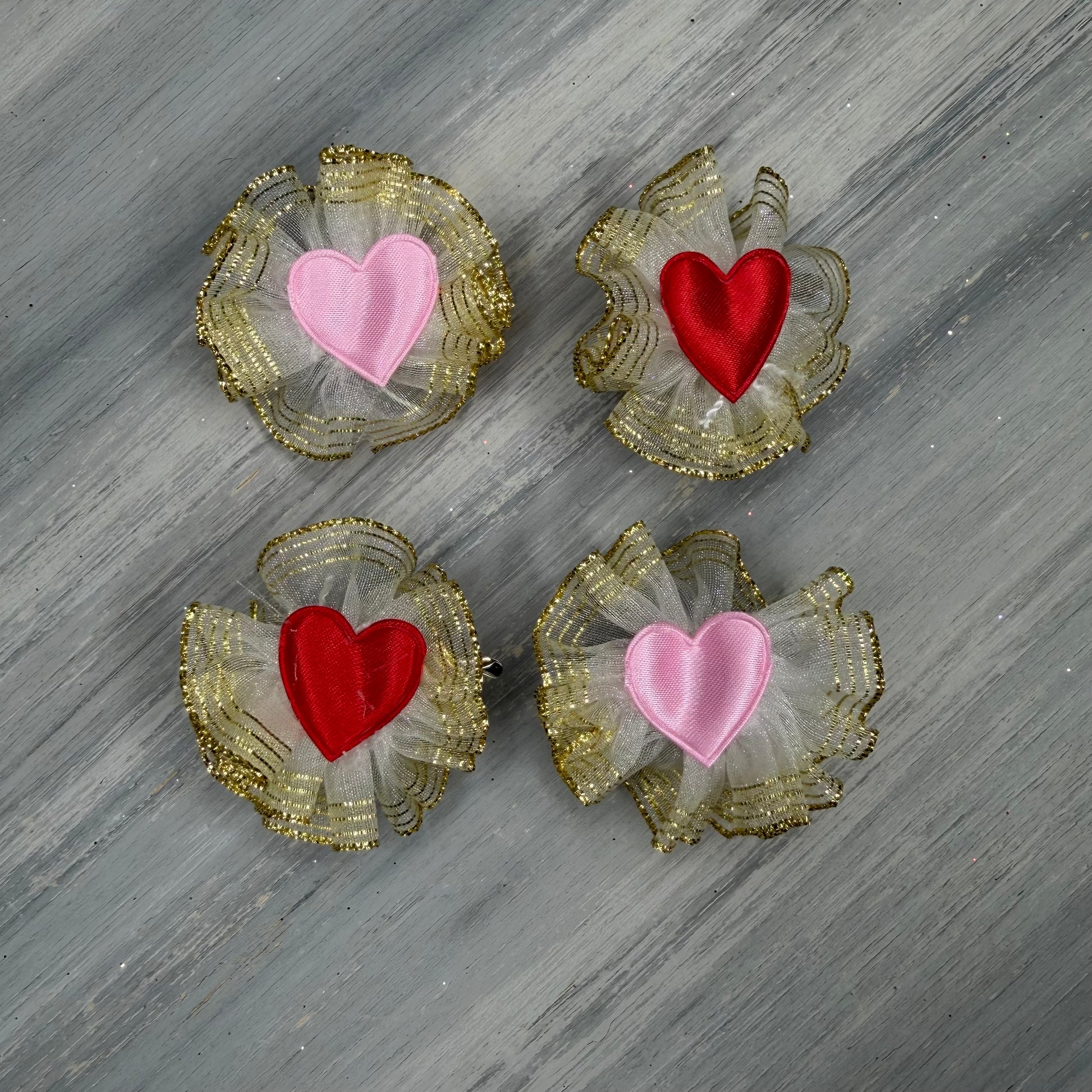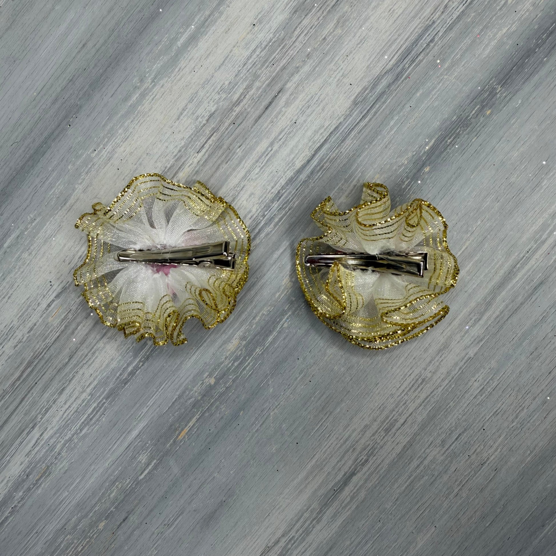 These new puff clips are the perfect addition. A classic puff with a flower embellishment in the middle, attached on a clip.